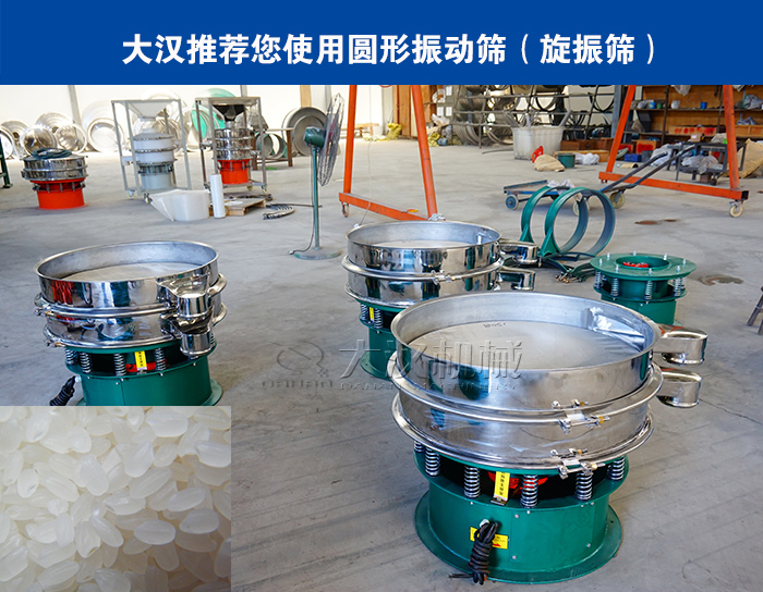 以上就是對大米圓形振動篩的介紹,如果您在篩分方面還有疑問歡迎致電大漢機械,我們將安排專業(yè)人員為您一對一進行解答,想要選購或了解大米振動篩的廣大用戶也可以隨時咨詢大漢,我們24小時為您服務~