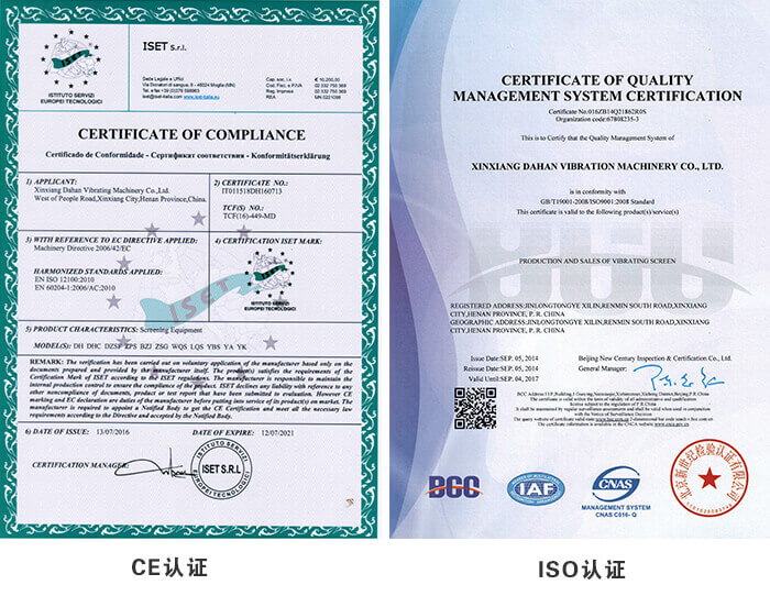 我們卻不能一味的追求低價。產(chǎn)品的質(zhì)量才是我們應(yīng)該注重的,一臺好的zsg礦用振動篩必須具備完善的功能,能夠滿足使用者的各個要求,同時選對廠家也能為您保障質(zhì)量!大漢生產(chǎn)的所以機械都已通過ISO9001國際質(zhì)量體系認證和歐盟CE認證!質(zhì)量有保證,您可以放心購買。
